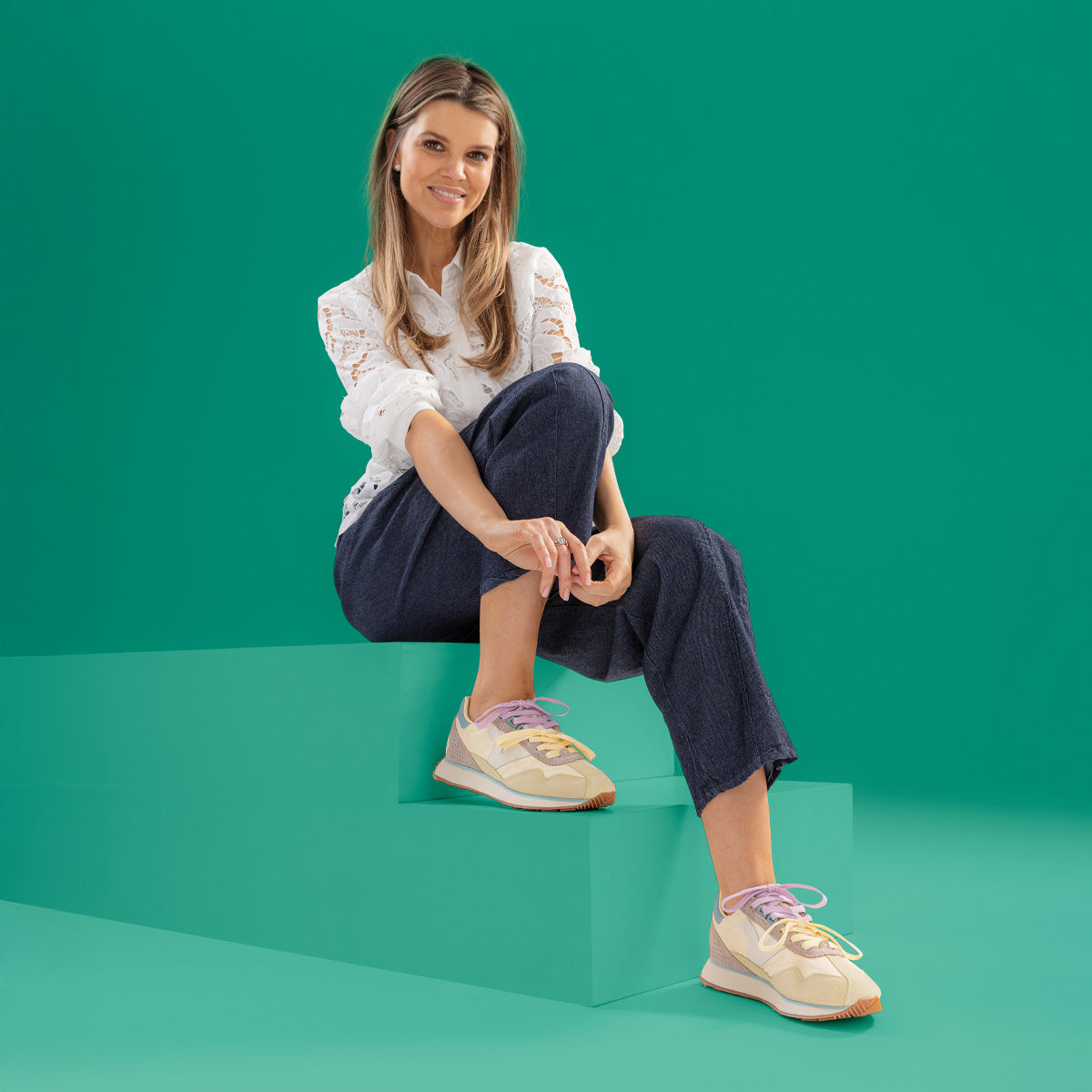 Deze sneaker-trend in zandtinten of pastelkleuren brengt zachtheid en frisheid aan je garderobe. Combineer ze met een lichte jeans of een ton-sur-ton outfit voor een moeiteloze, moderne look.