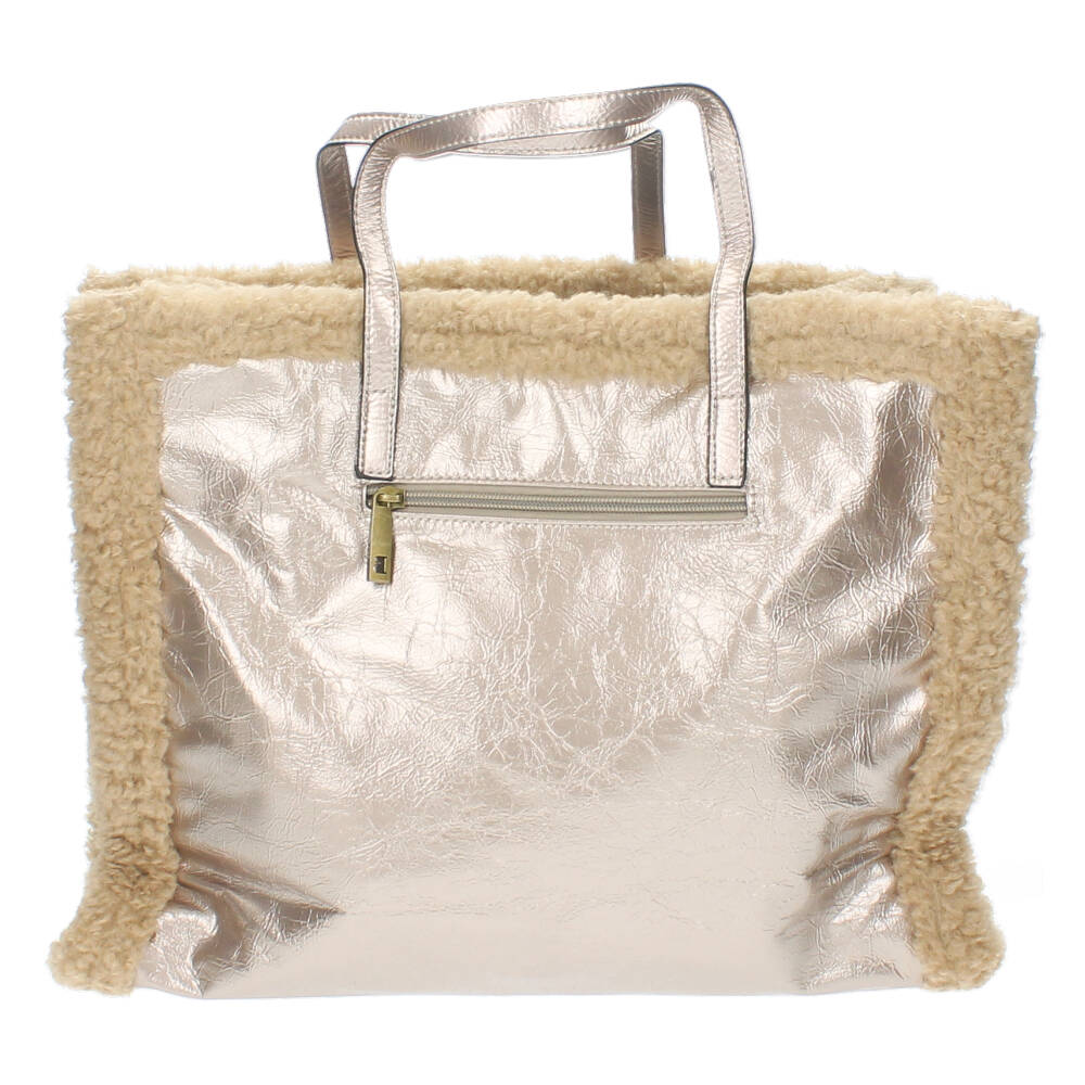 Deze metallic schoudertas heeft een hoogte van 32 cm, een breedte van 40 cm en een diepte van 14 cm. Deze tas wordt geleverd met een extra riem .